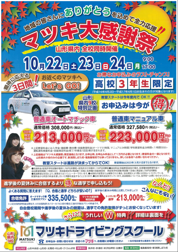 対象校:マツキドライビングスクール全校